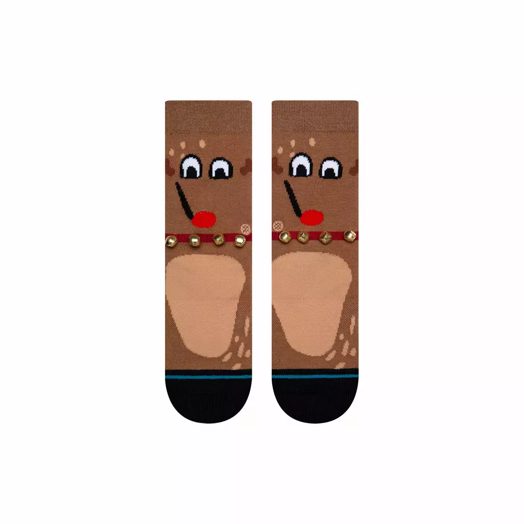 They can march to their own bells with these decorated socks featuring the most famous reindeer of all. This pair features mid-weight cushioning to keep their hooves feeling good. It’s also got a keep-up crew cut that won’t budge and a plush combed cotton blend, so your little calf can spread holiday joy, one step at a time.