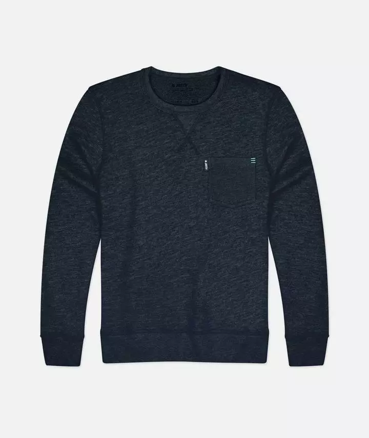 60% Cotton, 40% Polyester Special Blend Loopback Terry. Made in the USA! This is the sickest crew neck we’ve ever made or worn. An amazing hand, and high quality textile, sewing, and hand combine for a super comfy fit. Featuring a matching chest pocket, custom labeling, and Jetty’s signature triple bartack.