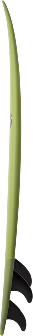 – The flatter rocker and added width catches waves easily and generates speed combined with a pulled in round tail for bite and hold through rail turns and in steeper waves.
