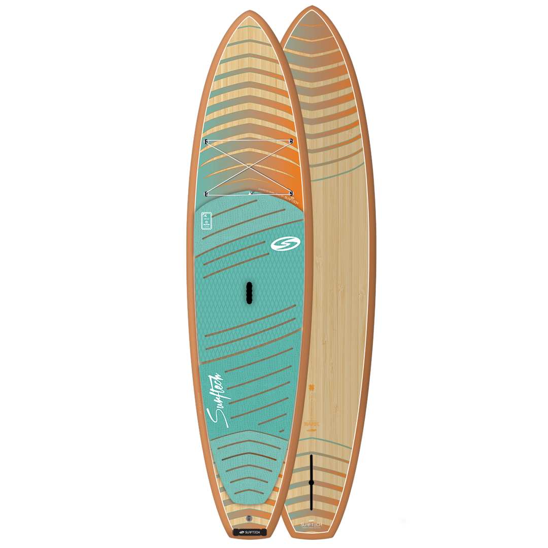 The Aleka/Tuflite V-Tech is the perfect board for any paddler that wants to do it all. Joe BARK shaped the Aleka to be stable enough for flat-water cruising plus it still performs well in small to medium surf. The Tuflite V-Tech utlizies a molded bamboo micro-sandiwch construction, quality fiberglass with epoxy and GreenPoxy bio-resin for durability and weight reduction, and includes a 3/4 thermal debossed Bloom™ foam deck pad, deck tie-downs, ledge handle, and rear padded handle.