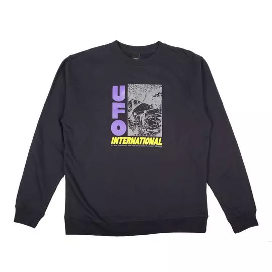 The UFO International Crewneck features a front graphic with quote at bottom “If it were imagination, how were we all seeing it at once. THEORIES.”